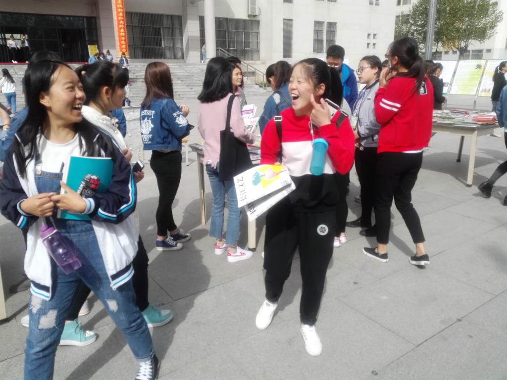 活动开始后,学生将漂流台围了个水泄不通,大家争先恐后挑选自己中意的杂志,老师们也通过微信相互告知来到现场挑选,《体育世界》等杂志被体育部老师首先选走,《西部财会》则是几个专业课老师首选杂志,还有不少老师选择了《小说选刊》、《读者》等等,最感动的是一个背着行囊,拉着拉杆箱准备回家的男生,怯怯地询问工作人员,说自己马上去赶车,可否挑选几本杂志带回老家阅读,当得到首肯后挑选了三本杂志满意而去。还有一位卫生工也参与了活动,挑选了几本自己喜欢的杂志,综合教学楼的保安,近水楼台先得月也选择了爱看的杂志……