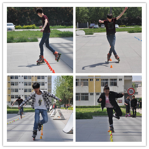 为迎接5月13—15日在西安外国语大学长安校区举行的2017年陕西省第四届学生轮滑比赛,为迎接即将到来的比赛,我院选拔成立了由3名男生、13名女生队员组成的院轮滑代表队,连日来,在教练员李健兵老师的带领下,我院轮滑队全体队员进行着持续而艰苦的训练,全力备战,力求取得优异成绩。轮滑场上,队员们脚踩轮滑鞋,时而猫腰,时而挺身,时而冲刺,时而缓行,一个单调的动作,每名队员得反复做上几十遍,直看得场外旁观者眼花缭乱。尽管烈日当空,汗水湿透衣服,可是没有人叫苦叫累。训练起来都很认真。