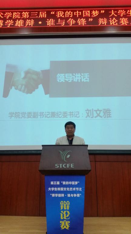 赛后,语文艺术教研室主任田会云对比赛进行了精彩点评,会计二系主任李启明宣布了比赛结果,学院党委副书记兼纪委书记刘文雅做了重要讲话。刘书记首先对本次辩论赛取得圆满成功表示热烈祝贺,对承办本次活动付出辛勤努力的所有老师和同学表示衷心的感谢,对获奖的团体和个人表示热烈的祝贺!随后,刘书记从五个方面对本次比赛提出了充分的肯定与高度的赞扬。一是领导重视,参与度高。整场比赛座无虚席,各系专职副书记亲临现场指导参与,各系认真遴选,选手水准较高。二是主题鲜明,贴近现实。三个辩题都比较贴合目前大学生的思想状况,符合当今社会的基本形式,大学生在辩论的过程中不断成长学习,使真理越辩越明晰。三是女生铿锵有力,男生洋洋洒洒。女同学辩论中铿锵有力,真情使然,语速飞快,盛气满满;男同学辩论中才思敏捷,侃侃而谈,提问尖刻,对答如流,充分彰显了我院大学生较高的综合素质。四是大胆自信,人才济济。通过此次辩论赛,为我院发掘了不少口齿伶俐,思维敏捷的辩手和组织协调能力较强的大学生,辩手们在辩论场上大胆自信,舌战群儒的优异表现,更是让我们看到了陕财院的人才济济,后继有人。五是组织严密,配合紧凑。整场比赛全场秩序良好,能够从大处着眼,小处着手,注重细节,组织严密,配合默契。最后,刘书记提出辩论赛给大学生提供了一个很好的历练平台,促使学生发散思维,提高口才,参赛过程比比赛结果更有意义,希望持续举办。