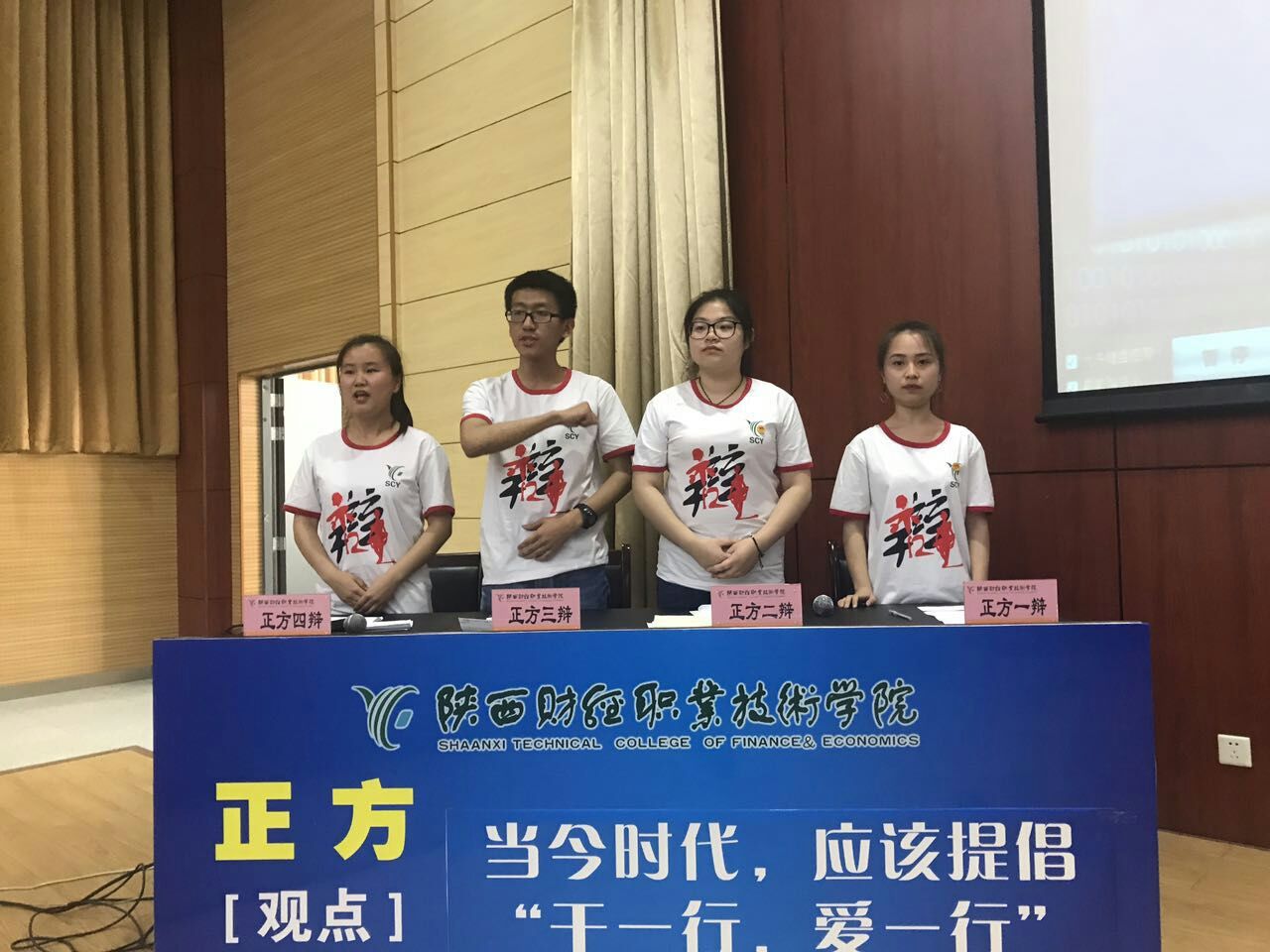 2017年5月11日下午16时30分,由学院团委主办,会计二系承办的陕西财经职业技术学院第三届“我的中国梦”大学生文化艺术节之“博学雄辩·谁与争锋”辩论赛总决赛在我院学术报告厅隆重举行。学院党委副书记兼纪委书记刘文雅、会计二系主任李启明、团委书记窦曼娟、会计二系专职副书记乔晶策、会计三系专职副书记张晓战、经济与金融管理系专职副书记王省军出席并观看了比赛。图书馆馆长崔斗、语文艺术教研室主任田会云、传统文化教研室主任王娟和宣传处张洁老师担任比赛评委。450余名师生共同观看了此次总决赛。