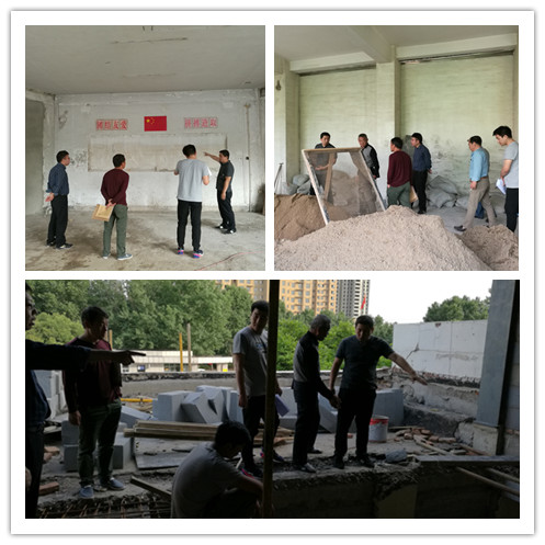 5月24日下午,实训资源整合建设工作领导小组办公室负责人张力带领部门全体人员、监理公司项目总监、施工单位项目经理及技术员等对大学生综合素养拓展中心施工现场进行了全面检查。