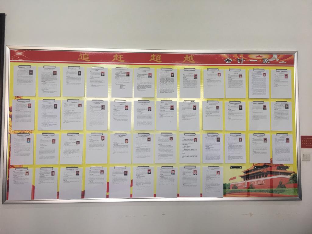 会计一系深入贯彻落实省委、省教工委和学院党委的关于追赶超越的要求,推进年度重点工作落实,从2017年2月21日开学至6月9日,组织本系每一位教职工围绕“追赶谁?怎么追赶”和“超越谁,怎么超越”来部署工作任务,每人根据自己的实际情况自己设立一个追赶目标,追赶计划,超越目标,超越计划,写成“追赶超越”责任书,系办将全系教职工的责任书汇总成“责任墙”,行成压力传导.在责任书里,要求大家要清楚追赶的对象是谁、超越的标尺在哪里,细化工作目标,明确工作责任,不断探索教学、管理模式创新,丰富活动内容,注重品牌建设,形成长效机制,确保会计一系年度工作顺利完成。系教职工以问题为导向,紧盯先进,着眼短板,明确目标,认真真学习好经验好做法,一步一个脚印向前迈进。