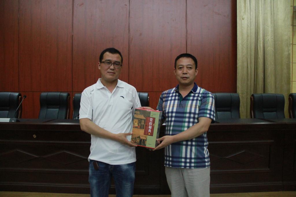 临近尾声,他与同学们进行了互动交流,同学们纷纷提出了现实中遇到的比较困惑的问题,涉及专业课学习、职业生涯规划、创业等方面,他一一耐心为同学解答。报告会在轻松愉悦的氛围下圆满结束。会后,经济与金融管理系专职书记王省军赠《资质通鉴》一套作为回馈礼物,并合影留念。
