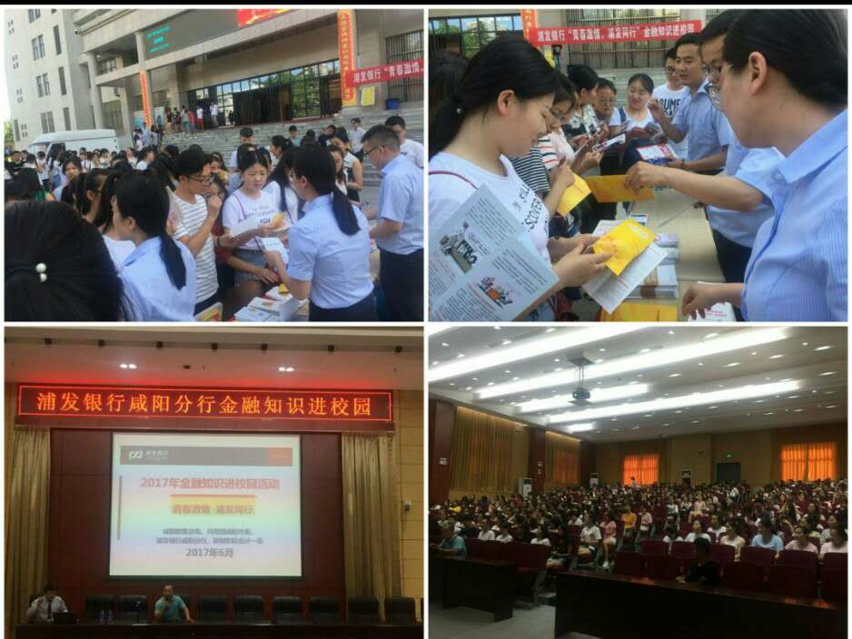 6月22日,浦发银行咸阳分行一行10余人走进会计一系开展“青春激情、浦发同行”宣传活动。据悉,此次活动由咸阳银监分局、共青团咸阳市委、银行咸阳分行及我院会计一系联合发起。工作人员在学校人流量较为密集的综合楼前广场及周边张贴宣传海报,发放宣传单页、宣传册,将信息传递给更多的学生;在设立的摊位上,浦发银行咸阳分行的青年员工们向学生们进行宣传、分享案例,告知同学们应当抵制来自不正规渠道的诱惑、树立理性的消费观念、增强金融风险防范意识。