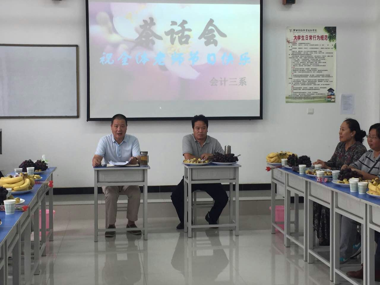 9月8日下午,会计三系召开庆祝第33个教师节茶话会,全体教师代表汇聚一堂分享节日的欢乐。