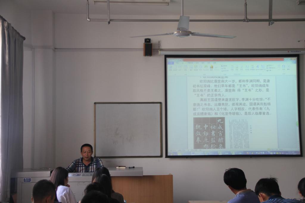 9月20日下午4时,经济与金融管理系党总支“国学开讲”专题活动第十课在综合楼617教室开讲,经金系专职副书记王省军与全体党员和部分学生干部交流了中华民族的文化瑰宝——书法艺术。