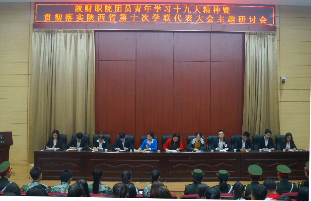 11月7日下午4:00,团委在学术报告厅成功举办了学习党的十九大精神暨贯彻落实陕西省第十次学联代表大会精神主题研讨会。全院各班班委共计400余名团员青年参加了会议。