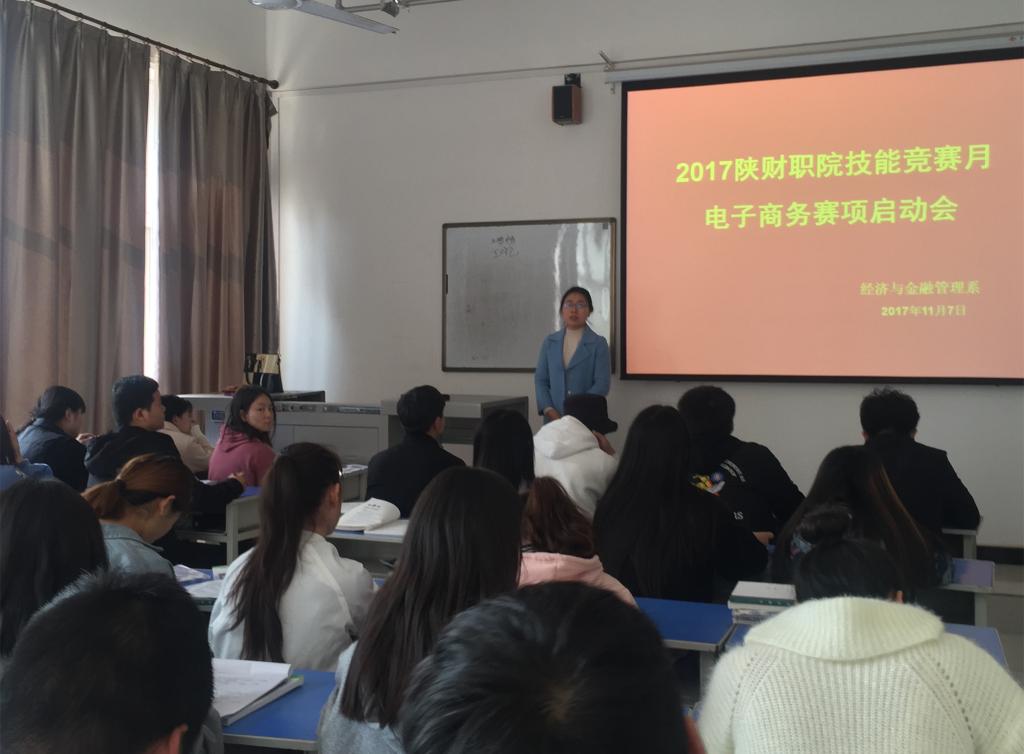 2017年11月8日下午,由经济与金融管理系物流电商教研室承办的2017年“校内技能竞赛月”活动之“电子商务技能”赛项启动会在604教室举行。物流电商教研室主任张馨予,电子商务技能赛项指导教师闫亚飞、席瑶和电子商务专业全体学生参加了启动会。