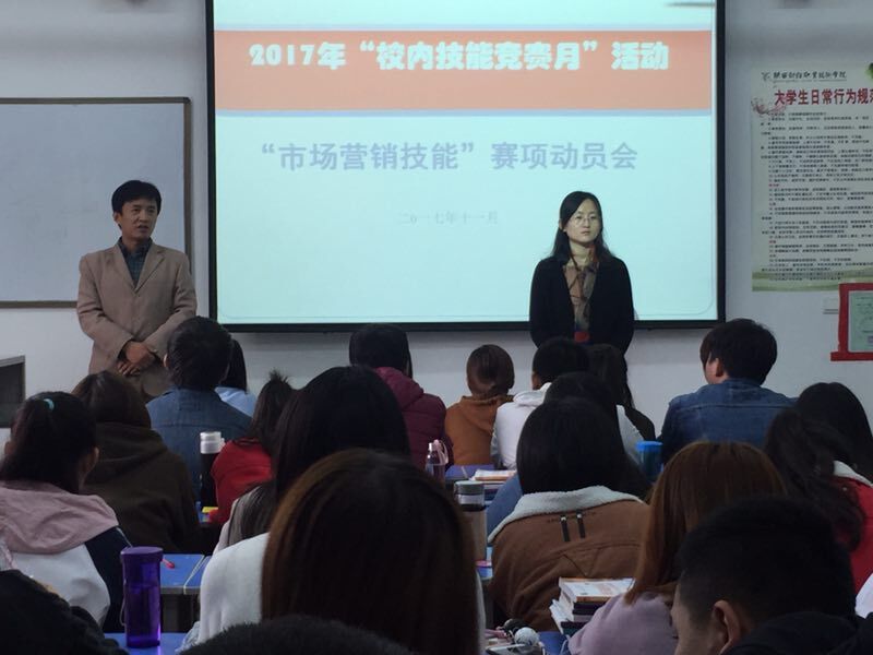 11月9日中午,经金系在综合教学楼606教室举行市场营销赛项动员会。市场营销教研室主任雷锋刚、物流教研室主任张馨予以及市场营销教研室赵莹老师一起为参赛的80余名学生作了赛项动员和说明。