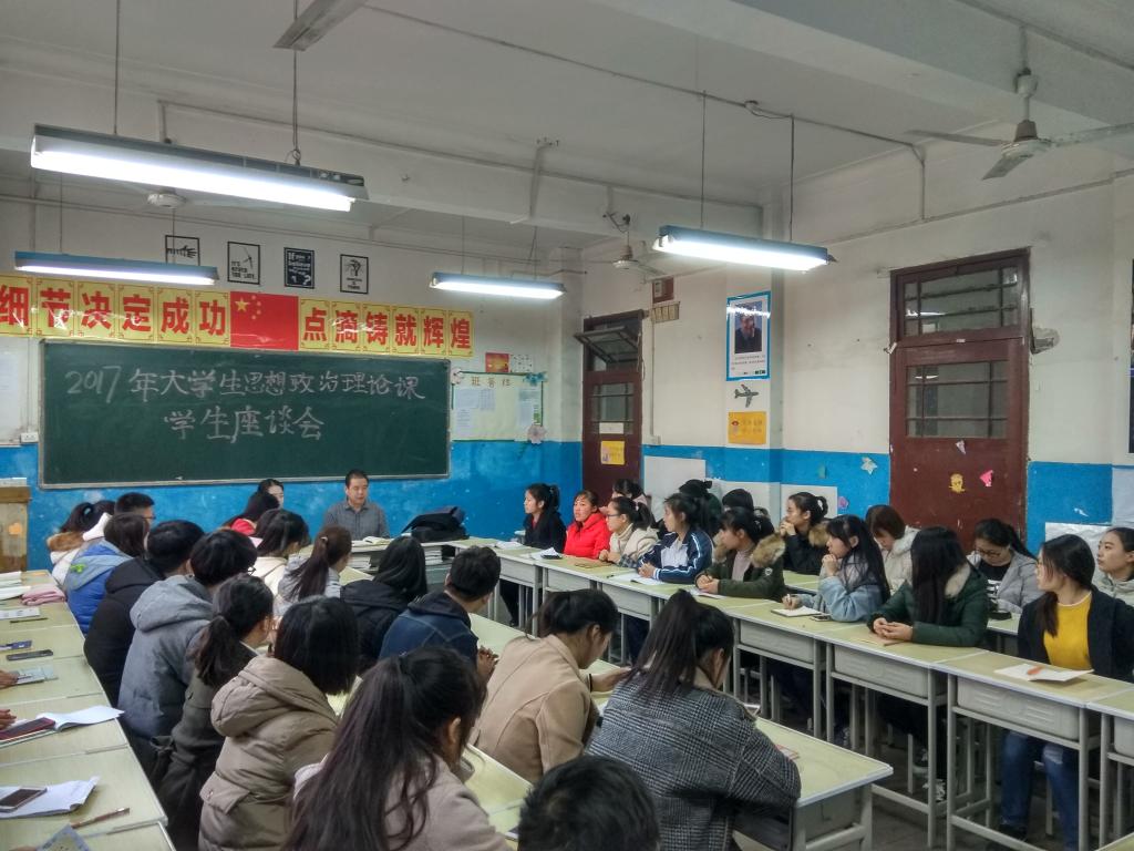 12月11日下午2点半,我院在南校区201教室举办了2017年大学生思想政治理论课学生座谈会。出席座谈会的有学生处处长雷旭、团委干事王炅,以及南校区各班学习委员共计50人。