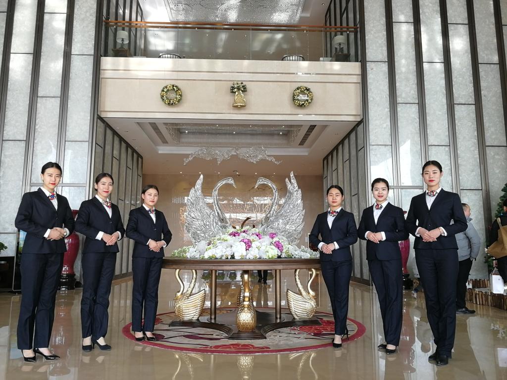 初到三门峡天鹅城国际酒店,人事部经理何剑伦接待了大家并介绍了该企业整体发展情况,酒店大堂副经理对学生进行了酒店礼仪,酒店管理、员工职责等方面的培训,此次见习的岗位是财务、礼宾及管理事务岗。为期五天的交流实习很快结束了,学生们在各自的工作岗位上按时守纪,认真负责,吃苦耐劳,积极主动,爱岗敬业,服从整体安排,与同事相处融洽,处处彰显了我院学生良好的精神风貌与专业素养!得到了酒店领导和同事的一致好评。市直机关事务局郭局长还专程接见了我院带队老师和学生,对于同学们见习期间的优异表现给予了极高评价,并希望同学们能留下来为陕豫友谊做出贡献,并许诺对于优秀学生可以解决事业单位编制。听带队老师介绍了学院育人模式及理念后,对于我院实施的“厚德育人工程”给予充分肯定与赞赏,并希望今后能和我院建立长期的合作关系,致力校企合作,实现双方共赢。