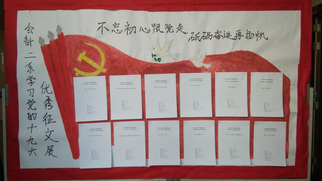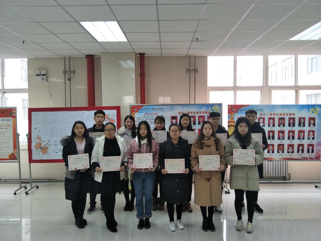 为积极响应学院党委和思想政治理论教学科研部的号召,鼓舞和动员全系师生认真学习党的十九大精神,践行社会主义核心价值观,会计二系团总支于2017年12月在全系范围内开展了“不忘初心跟党走,砥砺奋进再扬帆”学习党的十九大精神主题征文活动,全系17个班级40余人参与了此次活动。经过系部老师层层筛选,最终评选出十二篇优秀征文,其中王璞丽荣获一等奖,淡瑞雪、王巧荣获二等奖,席秦凤、长孙娟、赵晓杰荣获三等奖,许嘉荟、张蔚玮、伍天娇、党悦、何文康、焦彤等六名同学荣获优秀奖。