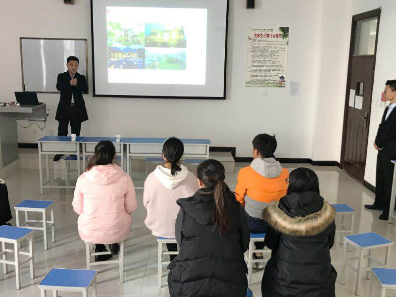 会上,首先由新荣记酒店人力资源部鹿斌进行宣讲。他从薪资待遇、未来发展、企业文化建设等方面详细的介绍各岗位职能,使参加宣讲会的同学更全面、细致的了解单位情况。会场气氛热烈,对于学生的问题,鹿斌先生热情解答问题。。