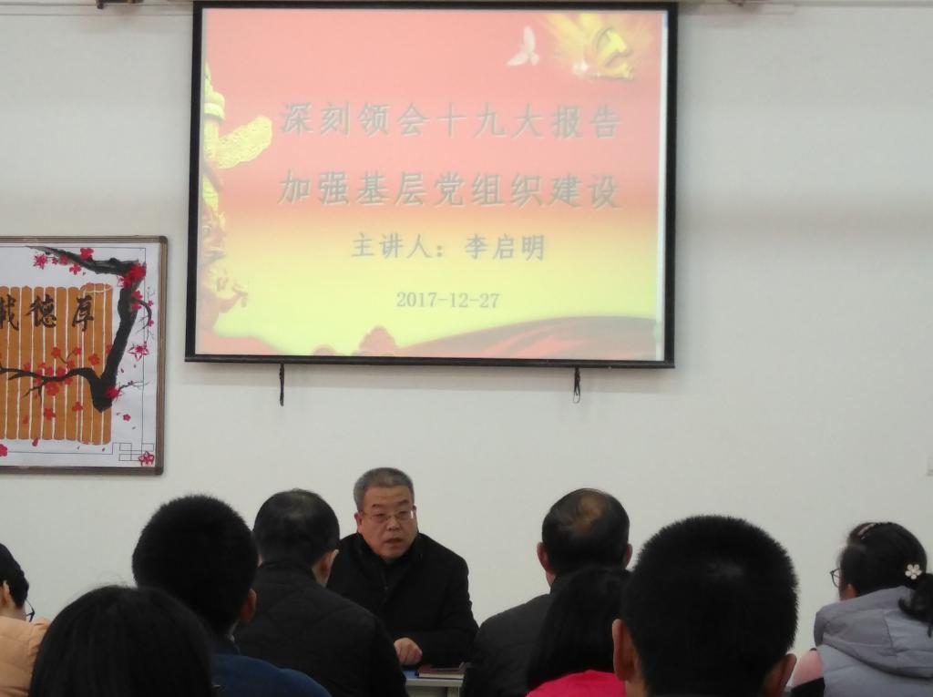 2017年12月27日下午4点,会计二系党总支书记李启明在综合楼415教室给会计二系全体教师党员和学生党员讲党课。学习会由专职副书记乔晶策主持。