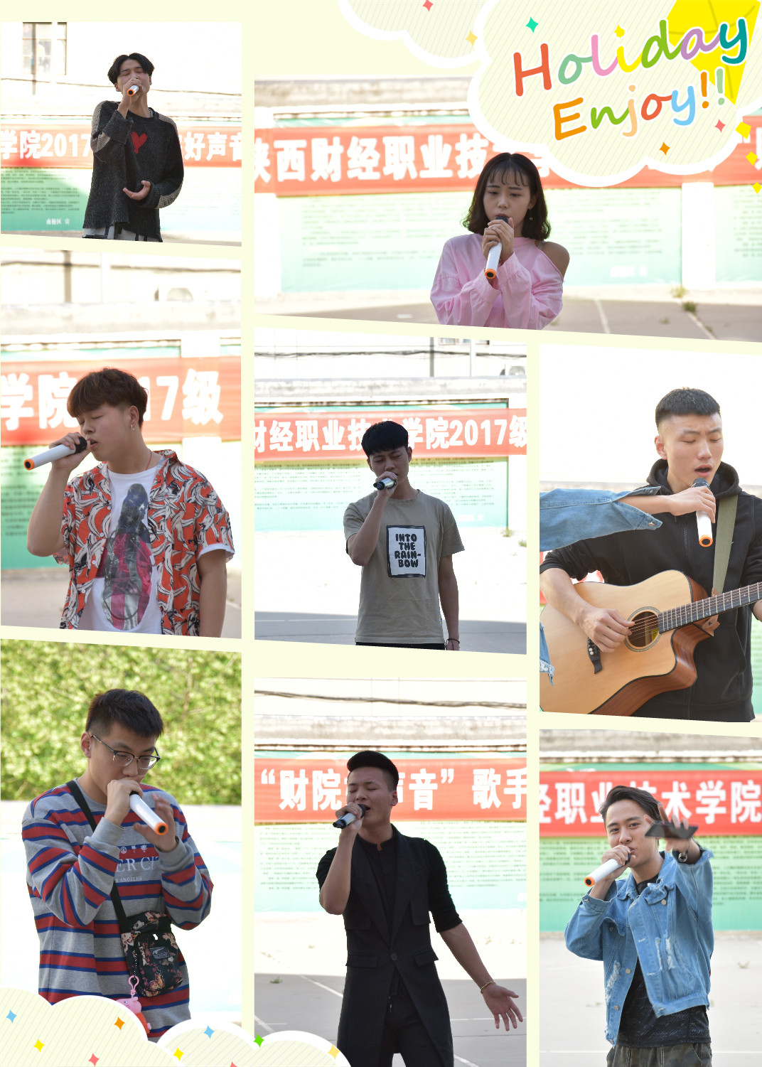 歌声嘹亮,旋律悠扬。1号选手的B-box点燃了全场,7号选手吉他弹唱的《走马》婉转动听,13号选手带来的hip-hop歌曲《barbie》动感十足,20号选手张洪嘉动情演唱的《男孩》令人动容。参赛选手们在舞台上尽情展现自我,唱出青春的乐章,精彩的表现获得场上阵阵掌声。