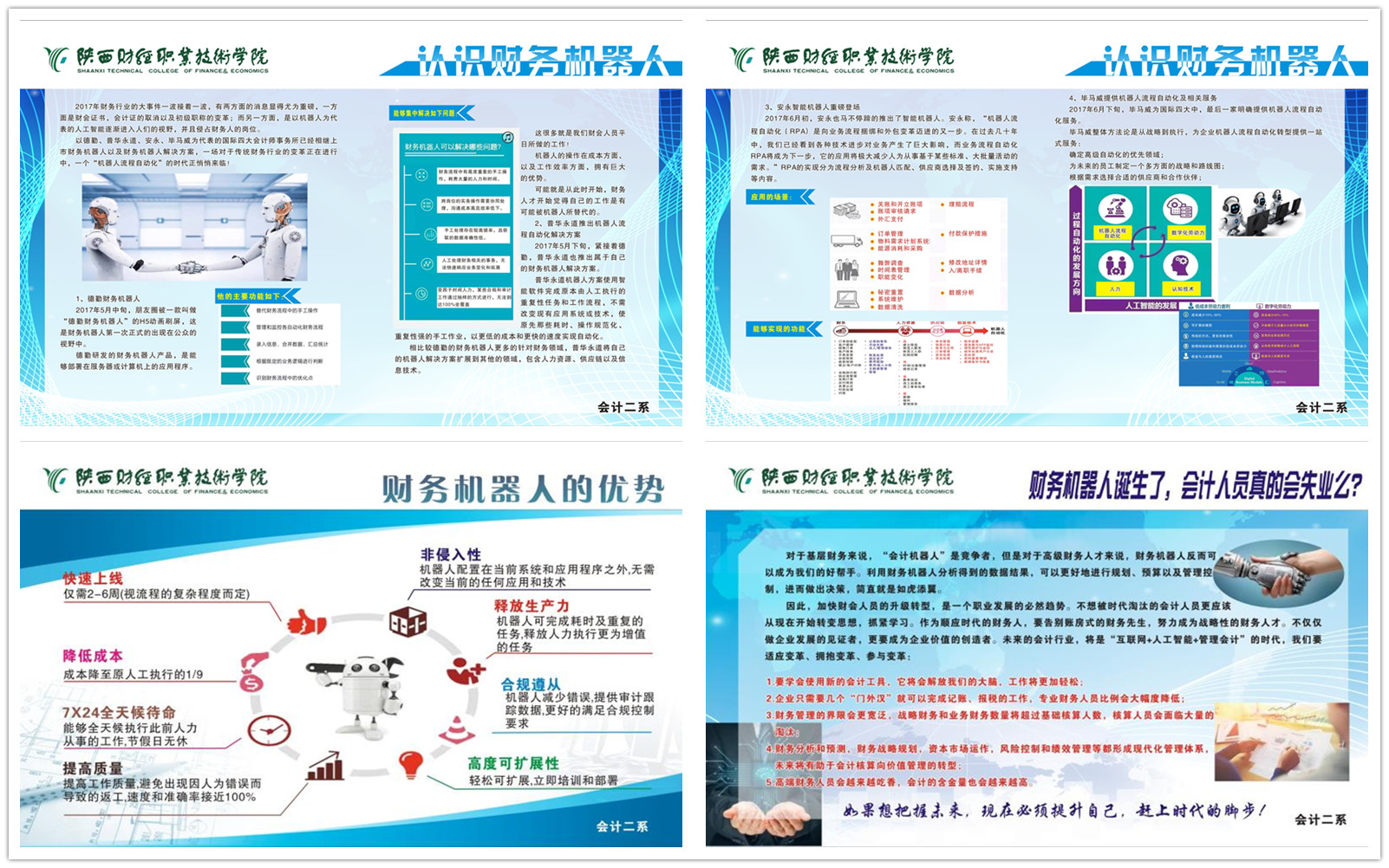 2018年4月23日,会计二系举办了以“认识财务机器人”为主题的展板展示活动。