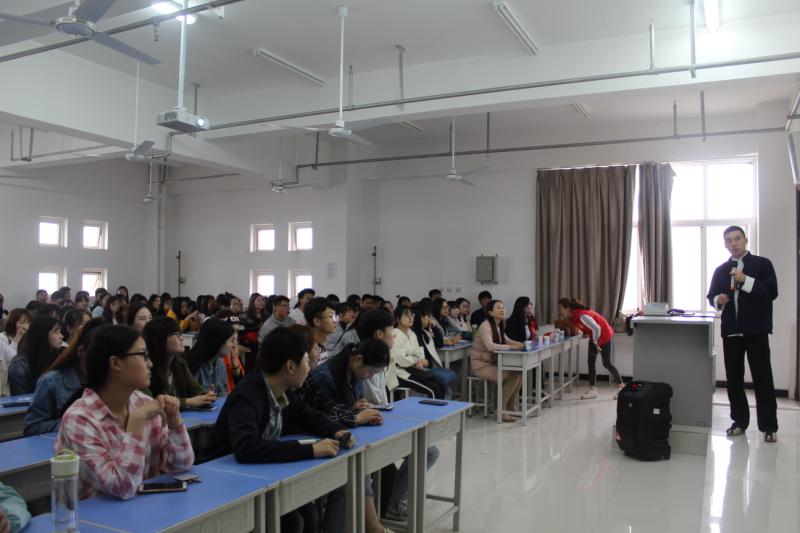 5月9日下午4:00,团委在综合楼715合班教室举办了“传承中华文化,共图民族复兴”优秀传统文化进校园宣讲活动。参加此次活动的有咸阳博物院宣教部主任史一媛,陕西艾茉文化传媒有限公司总经理、咸阳博物院传统文化活动策划顾问蔡晓,我院传统文化教研室主任王娟,以及“仪韵”大学生礼仪队、古韵国学社、子衿汉服社和对传统文化感兴趣的同学,共计100余人。