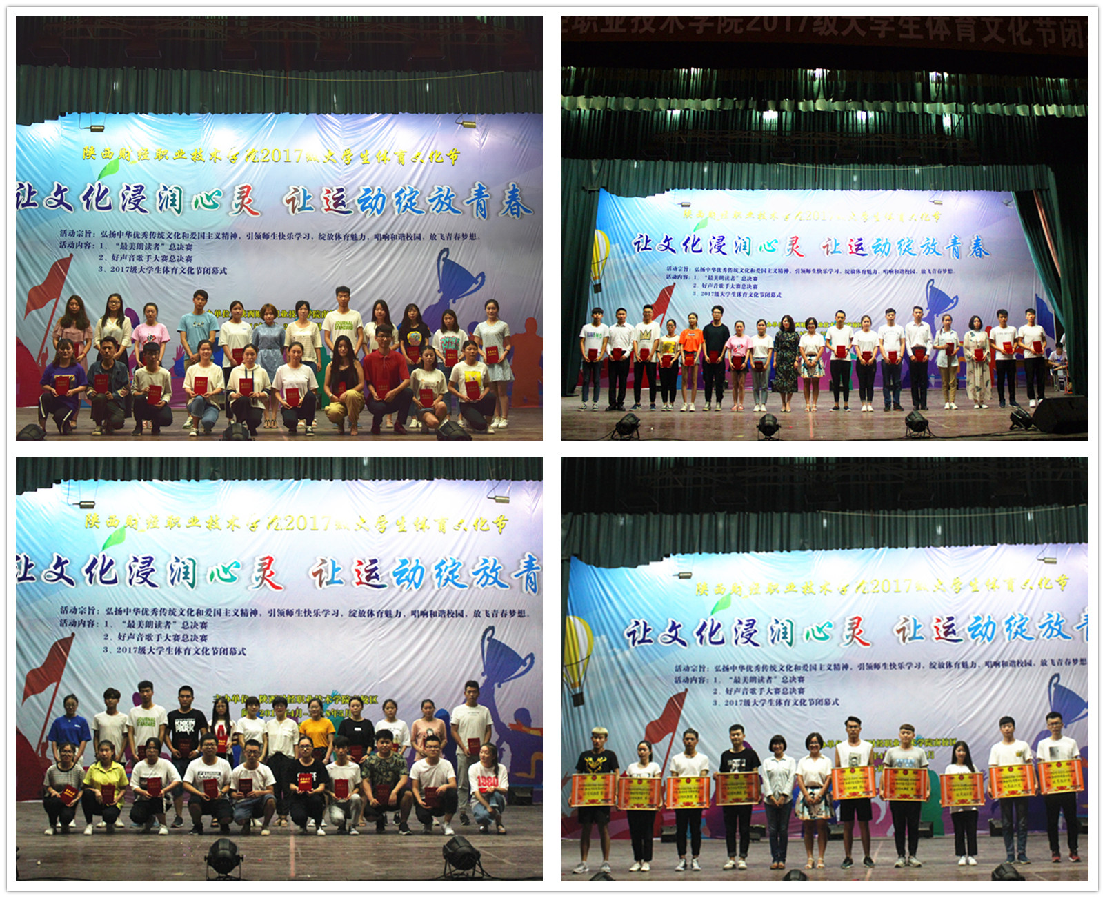 颁奖典礼上,主持人宣读了本届体育文化节八项奖项的获奖名单,辅导员上台为获奖同学颁发荣誉证书。