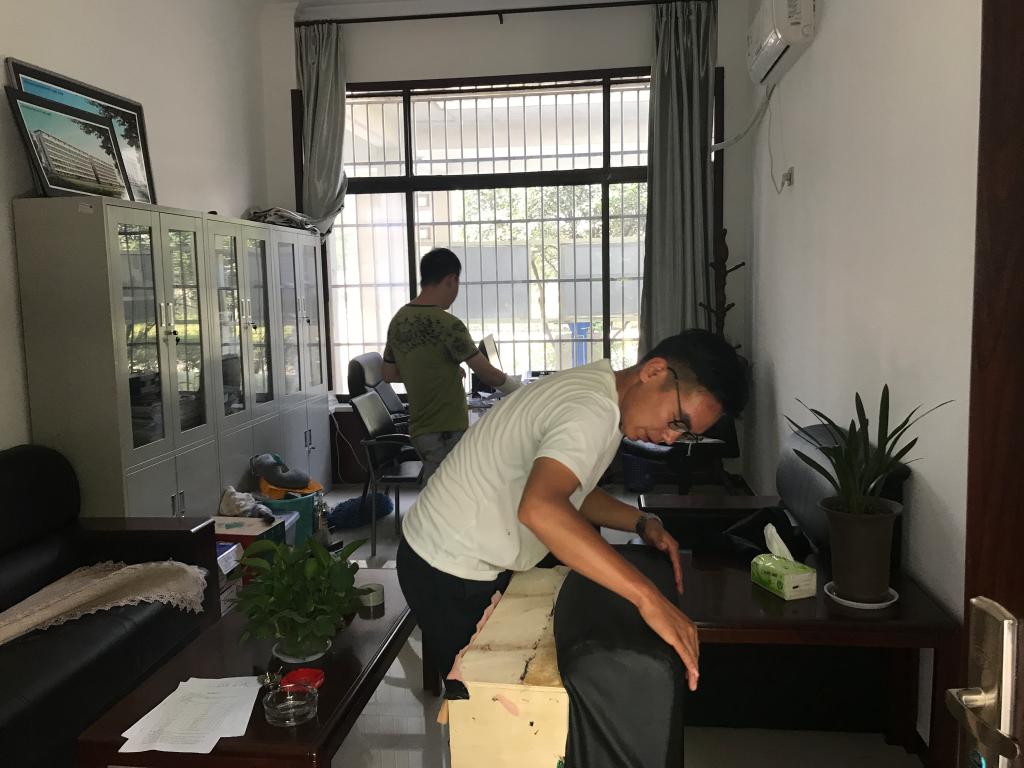 由于正值暑假,部分教职工外出学习或带队开展社会实践活动,而办公楼内的人员较为集中,因此,维修工作率先在办公楼内展开,待开学后,再对剩余有问题家具进行维修。