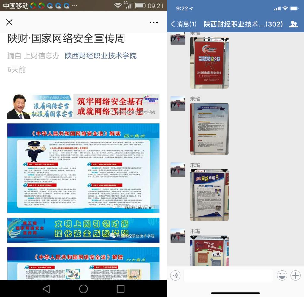 按照中共陕西省委网络安全和信息化领导小组办公室下发的《2018年陕西省第五届国家网络安全宣传周活动实施方案的通知》(陕西网信【2018】13号)有关要求,9月17日至9月23日,我院组织开展了主题为“网络安全为人民,网络安全靠人民”的网络安全宣传周活动。短短7天时间内,全院处室和全体师生围绕金融、电信等重点领域和行业的网络安全问题,针对社会公众关注的热点难点,通过网站、官微、微信群、LED大屏、组织网络安全知识竞赛等多种网络媒体和渠道,充分发挥“微宣传”矩阵传播作用,普及网络安全知识,大力倡导依法文明上网,做到全域全员全覆盖。一系列形式多样的主题宣传活动吸引了广大师生深入参与,融入其中,在全院营造出网络安全人人有责、人人参与的良好氛围,网络安全宣传成效显著。