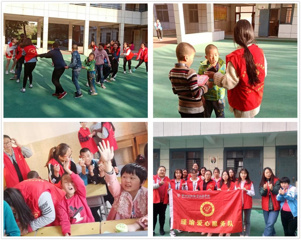 10月10日,瑾瑜爱心服务队的14名志愿者前往咸阳特殊儿童学校开展以“关爱儿童,奉献爱心”为主题的志愿服务活动。志愿者带领特殊儿童学校的孩子们画画、写字、玩游戏,虽然孩子们都有不同程度上的先天残疾,但志愿者的悉心指导、耐心照顾感化了每一位孩子,志愿者用真诚与友好赢得了残障儿童们的信赖,大手拉紧孩子们的小手,整个下午院子都充满温馨欢快的气氛。我院志愿者通过自己所学帮视障儿童体验了以往不敢尝试的活动项目,提高了视障儿童的学习能力,帮助他们重拾快乐,重建信心。