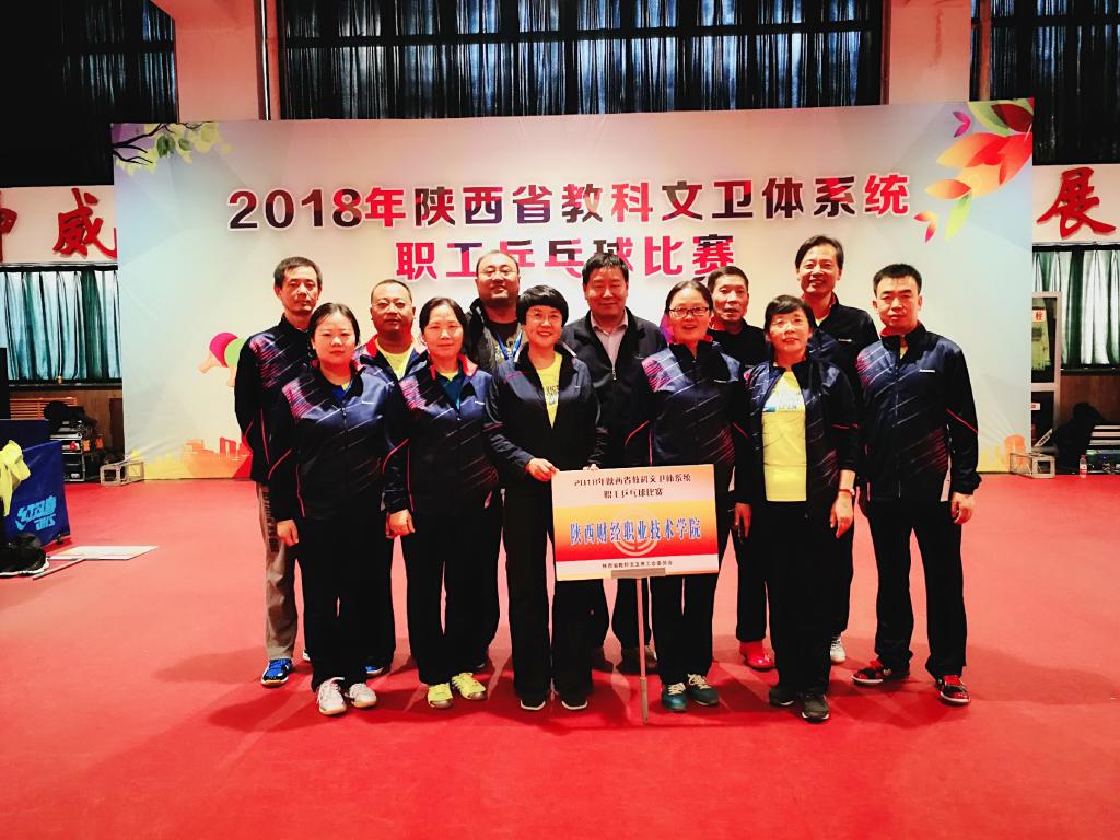由陕西省教科文卫体工会主办,西安体育学院承办的“2018年陕西省教科文卫体系统职工乒乓球比赛”于10月26日~28日在西安举行。我院选派了10名运动员组成代表队,以敢打敢拼、团结协作、虚心学习的精神积极投入到比赛中,并在与陕西职业技术学院的对决中取得胜利!