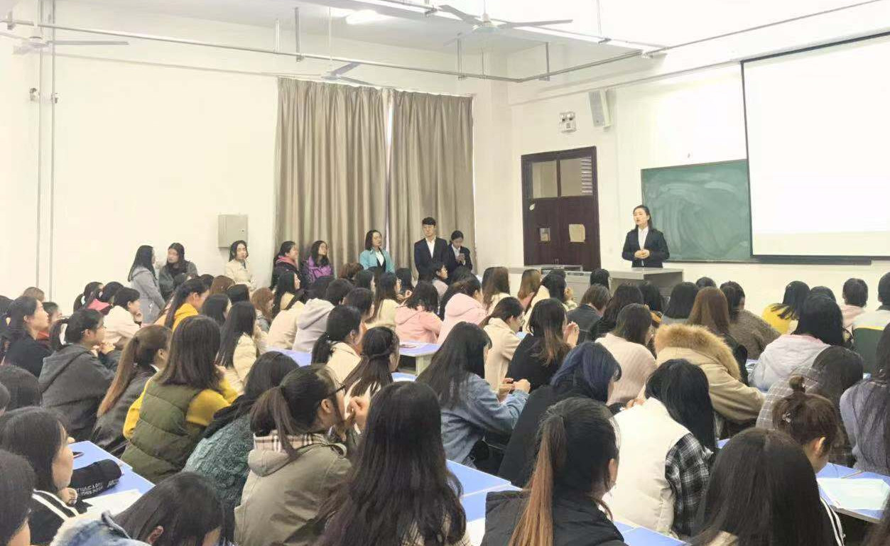 11月8日下午,会计学院在综合楼113教室举办专场招聘会。本次招聘会特邀陕西易通人力资源开发有限责任公司现场宣讲和面试,金融事业部部长梁瑛一行5人与会计学院辅导员张璐、刘歆语,管理学院辅导员王立户现场指导,近200人参加此次招聘会。