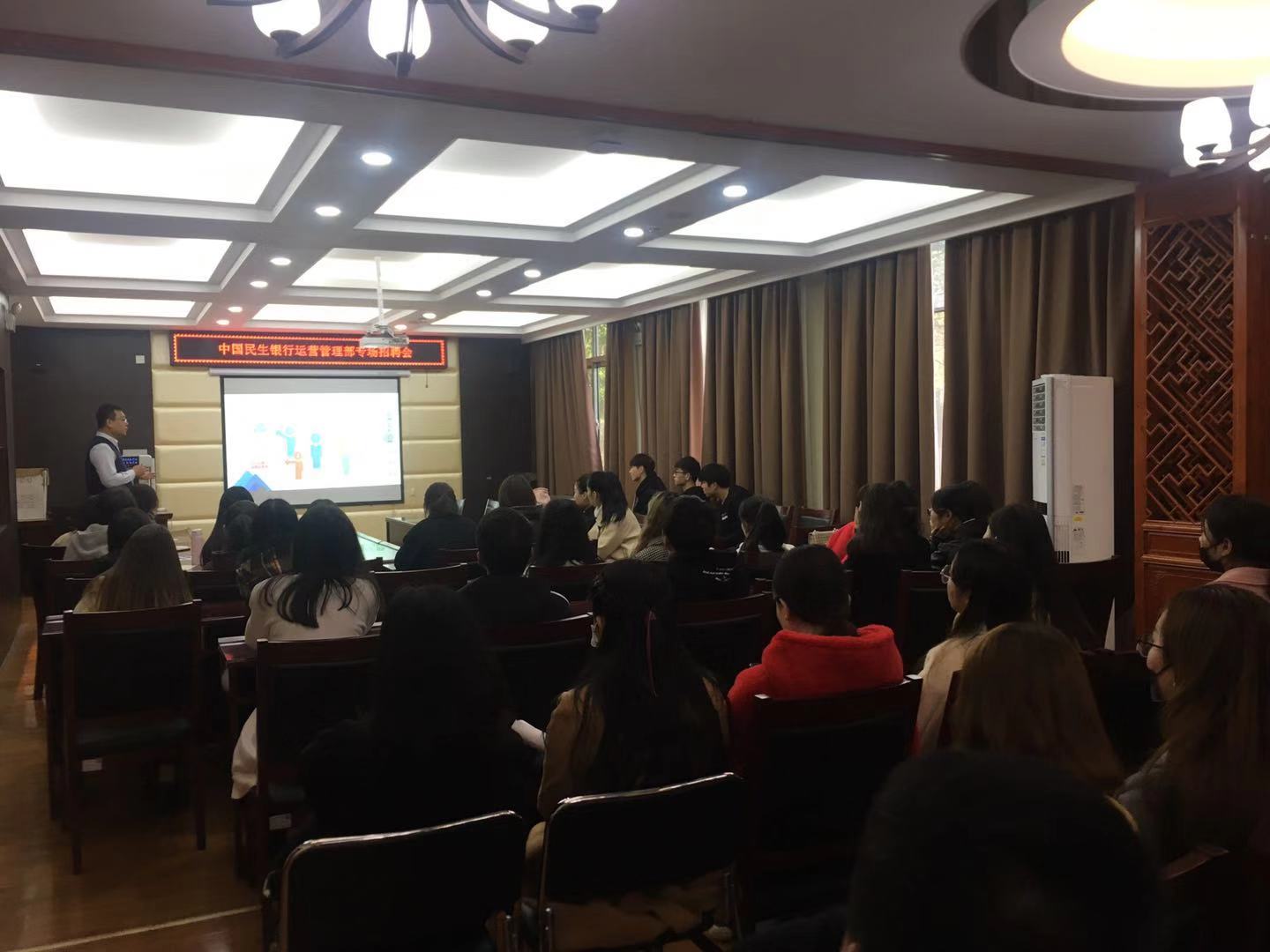 宣讲会开始,民生银行相关负责人向同学们阐述了目前的就业形势及公司背景、公司文化,中国民生银行作为世界的500强企业,是中国第一家由民营企业发起设立的全国性股份制商业银行。随后,负责人就招聘的岗位及招聘需求向同学们进行了详细介绍。同学们表现积极,踊跃发问,民生银行人员也就同学们的问题一一进行解答交流,最终共达成就业意向30余人。