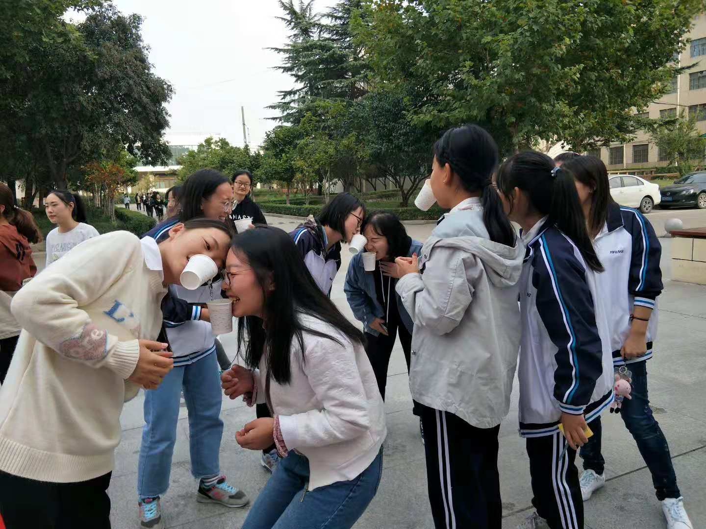 10月23日下午4:00,校学生会、“聚善”青年志愿者服务协会在学院综合楼前举办了“青春·三走”主题系列活动之纸杯传递青春。活动形式为十人一队站成一排,每人一只水杯,第一名队员水杯内装满水,用嘴巴咬住水杯相互传递,最后一名队员水杯内留水量最多者获胜。穿着红马甲的志愿者组织有序,参与活动的每一位同学都热情高涨,天色渐晚活动落下帷幕时同学们还意犹未尽。