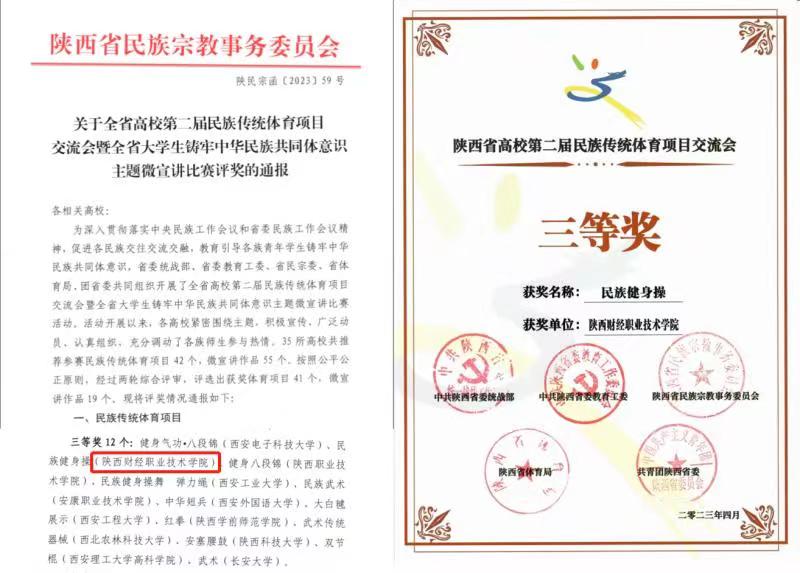 学校党委十分重视参加这次展演活动,党委副书记朱华斌多次听取准备汇报,对展示交流进行指导,党委统战部、运动与健康管理学院齐心协力积极筹备,自去年下半年开始多方协调沟通,精确选定参赛项目、精准选拔培训队员、精心录制视频材料、按时提交主办方评审,保质保量完成了交流会第一阶段任务。4月上旬一经收到上级有关交流会第二阶段现场展示交流的通知,两部门迅速响应,各司其职、协调配合,经过为期20天的集训,实现了我校作为通过第一阶段评审环节的两所省属高职院校之一与本科院校同台竞技最终获奖的新突破,为我校后续开展丰富的民族团结活动增添了信心、提供了借鉴,为今后多措并举开展民族团结进步创建工作,传播民族传统文化,讲好陕财故事,进一步深化铸牢中华民族共同体意识教育奠定了基础。