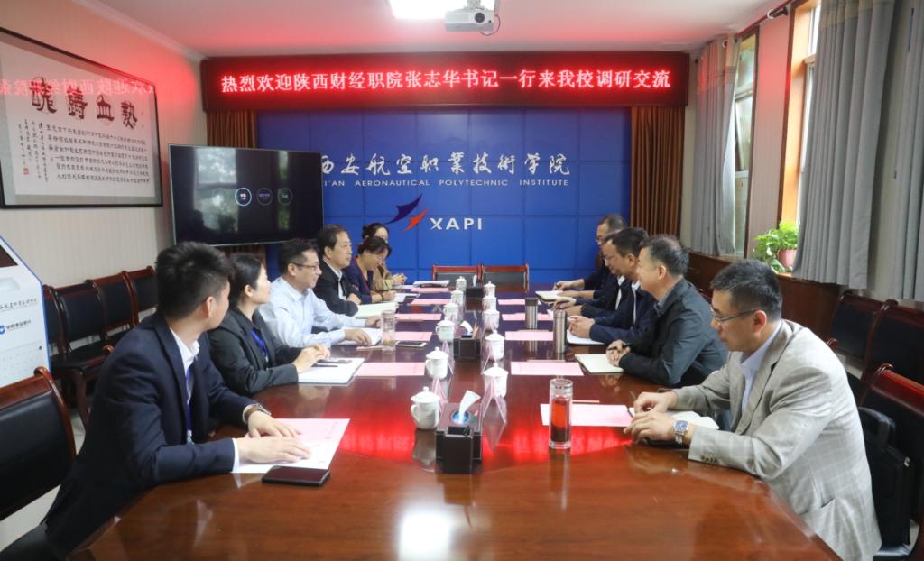 9月22日,学院党委书记张志华一行5人到西安航空职业技术学院调研交流。西航职院党委书记周岩,党委副书记、纪委书记杨建勋,人事处处长刘秋芳、组织部部长陈荷、党政办公室副主任吴昊、发展规划处处长助理吴玮等参加座谈会。