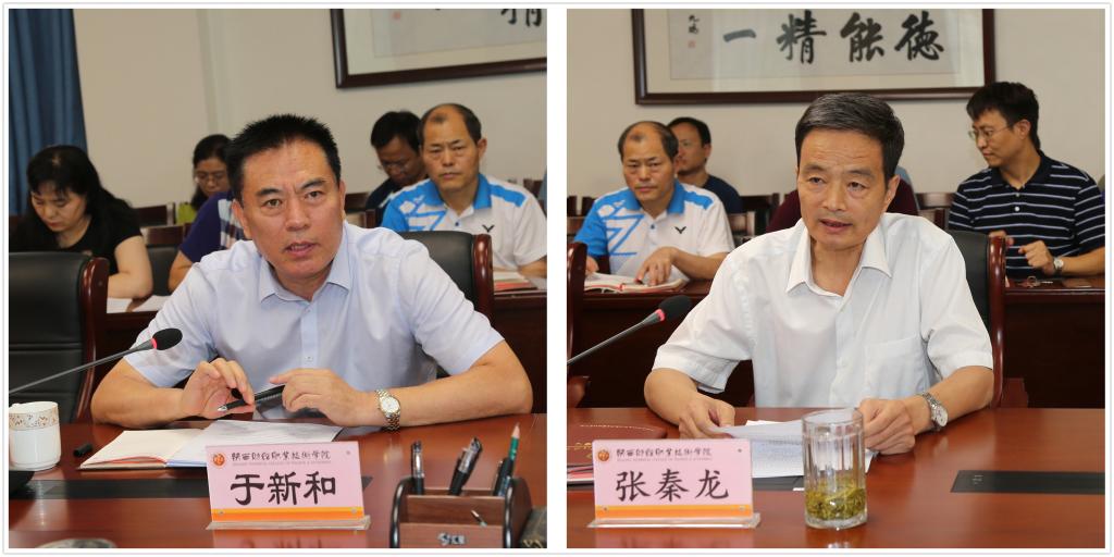 党委委员、副院长于新和、张秦龙结合习近平总书记来陕考察重要讲话精神学习,以“学习领会推动经济高质量发展迈出更大步伐”为题,结合学院发展、分管工作进行了重点发言。