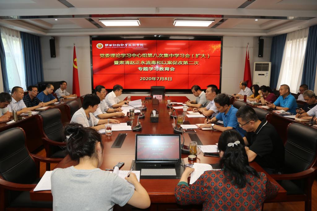 7月8日,学院在办公楼四楼会议室召开党委理论学习中心组学习会(扩大)暨肃清赵正永流毒和以案促改第二次专题学习教育会。学院领导班子成员,处级中层领导干部参加。会议由党委书记张志华主持。