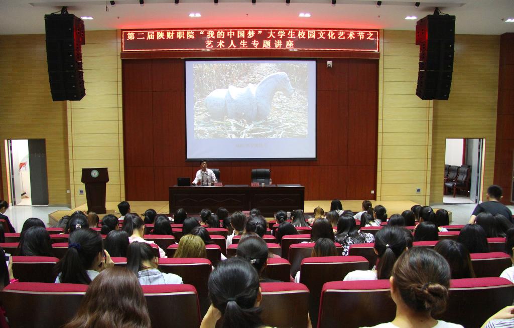 为庆祝第39个国际博物馆日,贯彻落实省委高教工委、省教育厅关于“优秀历史文化”进校园的文件精神。5月18日下午4点30分,我院团委在学术报告厅成功举办了第二届“我的中国梦”大学生校园文化艺术节之“艺术人生”专家讲座。本次讲座邀请到了昭陵博物馆副馆长、副研究馆员、西北大学国际商贸学院创业导师、西安交通大学仲英书院通史导师李浪涛先生。他以《咸阳汉唐石雕艺术欣赏》为题我院师生做了一场精彩绝伦的艺术讲座。团委书记窦曼娟主持讲座,师生代表共400余人参加了讲座。