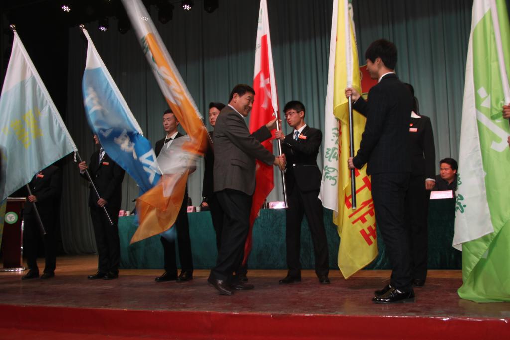 第二阶段由朱永斌、穆天楠、严丽丽、姚七栋、张晓战、王省军分别宣读了2015-2016学年度七个学生组织干部的任职决定并为其颁发了聘书。第十四届院学生会主席赵玉林同学代表2015年各学生组织干部做了表态发言,带领全体新任命的学生干部现场佩戴工作胸牌并慷慨激昂的宣读了入会誓词。党委副书记兼纪委书记刘文雅为院学生会、社团联合会、大学生艺术团、“聚善”青年志愿者服务协会、“晟睿”大学生新媒体工作室、“校园之声”广播站、校礼仪队七个学生组织负责人授旗。挥动的彩旗象征着新一届学生干部组织的正式成立。随后,团委书记窦曼娟对第七届“青马工程”培训班做了具体安排。本届培训班包括专题讲座、兄弟院校交流学习、校外参观、拓展训练、座谈等形式。旨在通过理论与实践相结合、校内与校外相结合的方式让同学们更加深入全面的掌握如何做一名优秀的学生干部。