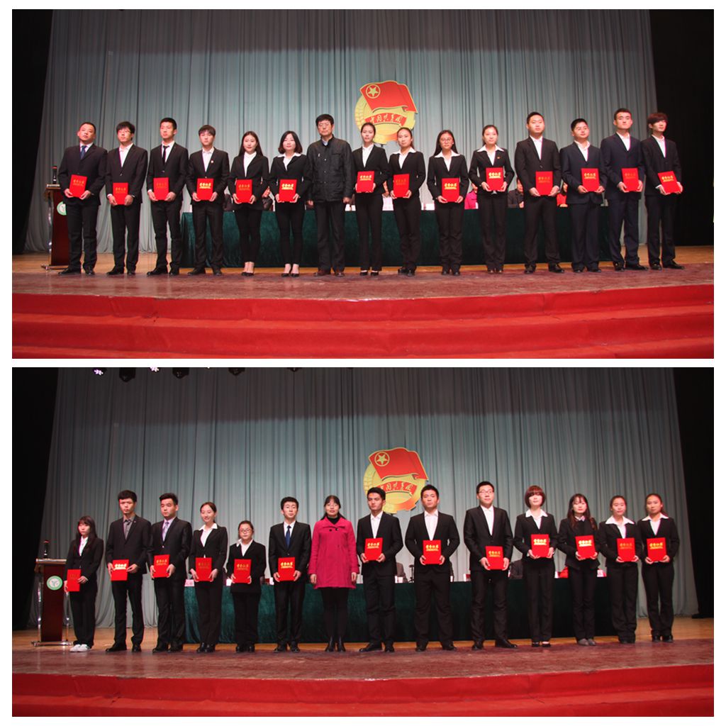 第一阶段由雷旭宣读关于表彰陕西财经职业技术学院学生组织2014~2015学年“优秀共青团工作者”的决定。第十三届学生会主席刘涛同学从大学生思想引导、校园文化活动、志愿服务实践活动、新媒体工作等四个方面向大会做了工作报告,并通过大屏幕将第十三届院学生走过的青春足迹生动直观的向在场师生进行了展示和回顾。他表示:第十三届院学生会的全体人员在今后的工作学习中,一定会牢记这段难忘的学生干部经历,牢记老师的谆谆教诲,在新的平台上不懈奋斗,努力成为陕财职院的骄傲。接下来与会领导为获得“优秀共青团工作者”的学生干部颁发了荣誉证书。