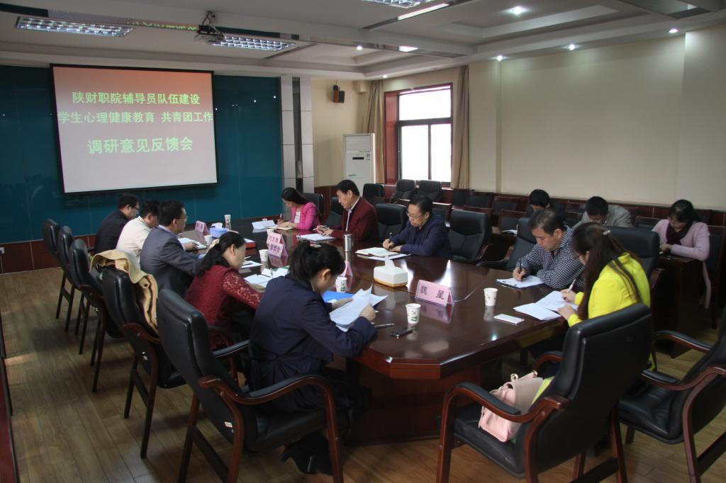 10月22日,陕西省委高教工委检查组来我校对辅导员队伍建设、学生心理健康教育及共青团工作进行专项检查指导。检查组由西安石油大学党委副书记雷西合任组长,成员有西安邮电大学学工部部长樊继福、陕西交通职业技术学院心理健康教育中心主任吴新颖、西安邮电大学团委书记荆昊、省委高教工委学工部副调研员魏星。检查组通过情况汇报会、师生座谈会、查阅资料、参观活动场地、意见反馈会等多种形式对我校辅导员队伍建设、学生心理健康教育及共青团工作进行专项调研和指导。学院副院长王文汉、党委副书记兼纪委书记刘文雅携相关处室负责人参加情况汇报及意见反馈会,16名一线辅导员、心理健康教育及团委工作人员同多名学生分别参与检查组座谈调研。