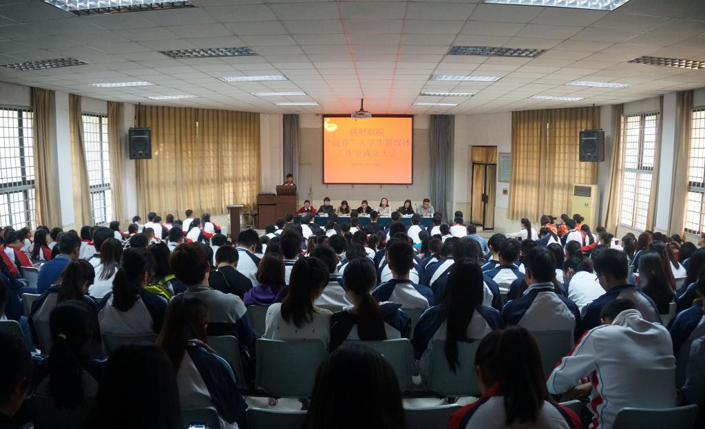 10月15日下午4:10分,“晟睿”大学生新媒体工作室成立大会在东阶梯教室举行。团委书记窦曼娟、会计一系团总支书记张欣瑞、会计二系团总支书记乔乐、会计三系团总支书记李瑾、经金系团总支书记袁永彦、南校区团总支负责人王小翠,各班班长、团支书以及我院各学生组织负责人,共计260余人参加了会议。