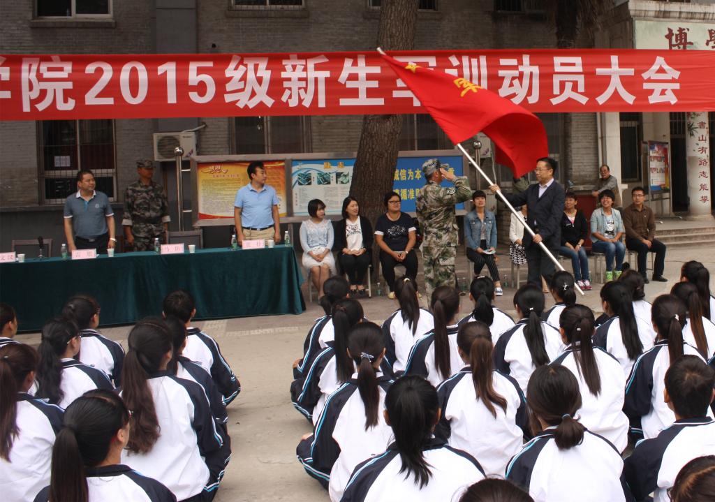 2015年9月16日上午,学院2015级新生军训动员大会在南校区举行。学院副院长、军训团政委王文汉出席会议,学生工作处处长、军训团副政委雷旭,军训团团长刘国玉、参谋长马防、主任甘少华以及南校区辅导员和2015级2778名新生参加会议。会议由南校区临时负责人、军训团副主任张朴主持。