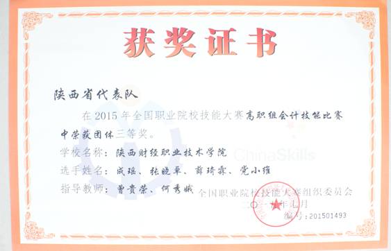 6月13日,2015年全国职业院校技能竞赛高职会计技能竞赛在山西经贸职业学院举行。代表陕西省参赛的我院代表队荣获团体三等奖。