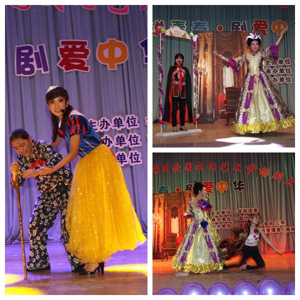 经过评委认真评选,会计二系的《白雪公主》摘得桂冠;南校区的《雷雨》荣获二等奖;经济与金融管理系的《爆笑三国》和会计三系的《新编茶馆》并列三等奖;会计一系的《梦想啊梦想》获得优秀奖。会计一系的翟皓月荣获最佳导演奖,最佳男主角和最佳女主角分别由会计三系的李方琪和南校区的马柔获得,而最佳男配角和最佳女配角分别由经济与金融管理系的的高烈和会计二系的张璐滢获得。