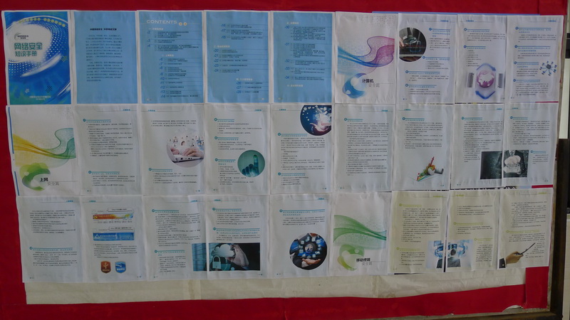 共享网络文明”专栏,及时公布宣传活动的方案、计划等相关资料和宣传活动所取得的成果。其次,在新教学楼的一层大厅和1号教学楼的一层大厅摆放宣传板,重点宣传网络安全知识手册上关于计算机安全、上网安全、移动终端安全、个人信息安全、法律知识和安全事件处置六部分内容。宣传现场吸引了众多学生驻足围观讨论,反响强烈。与此同时,在新教学楼门前悬挂“共建网络安全,共享网络文明”横幅,加强宣传力度。