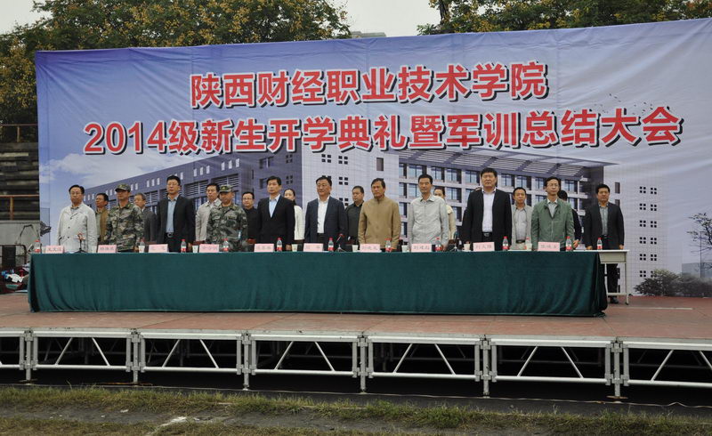 参会的还有渭北国防教育基地主任余守明,军训团团长杨庚辰,陕科大咸阳校区管委会副主任刘晓东,学院相关部门负责同志及2014级全体新生。
