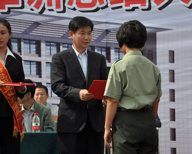 随后,阎平发表了热情洋溢的讲话,他向2014级新生表示最热烈的欢迎!向承训教官和参训辅导员表达了谢意!向受表彰的个人和集体表示祝贺!