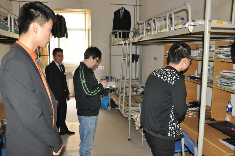 3月25日—4月1日,在各系的大力支持和配合下,学生公寓组织开展了本次活动第二阶段检查,检查分19个小组进行,参与老师和学生干部110人,所检查宿舍共计497间。在两次检查中,各系专职副书记均亲临现场参与检查,辅导员和学生干部都积极参与,提前到达各公寓,带领小组成员按照《学生宿舍评分标准》,对所检查宿舍认真打分,并且作了详细记录。