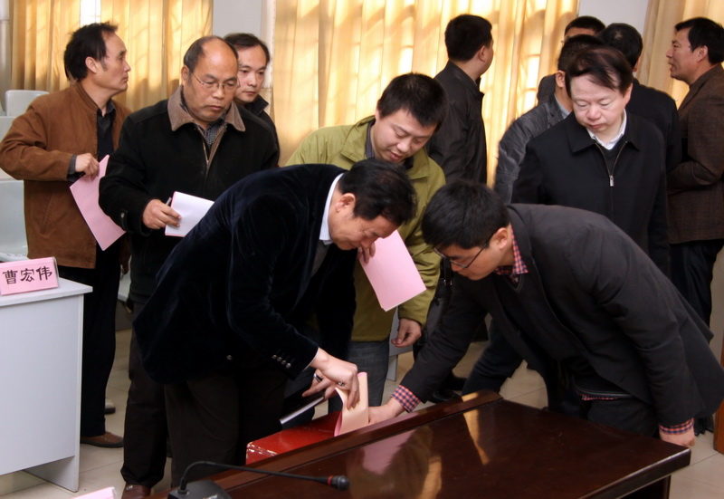 随后,全体与会人员仔细认真填写《学院领导班子民主测评表》《学院领导干部民主测评表》和《校级领导干部无任用民主推荐表》后,依次投入投票箱。
