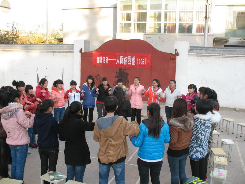 一是主题为“人际你我他”的团体训练活动,旨在提高学生的人际交往能力,使同学们明白良好的人际关系是如何建立的,并通过“同心圆”、“心有千千结”、“信任后倒”等几项活动让同学们在轻松的氛围中掌握了一定的人际交往技巧,并且能够运用于日常生活之中。