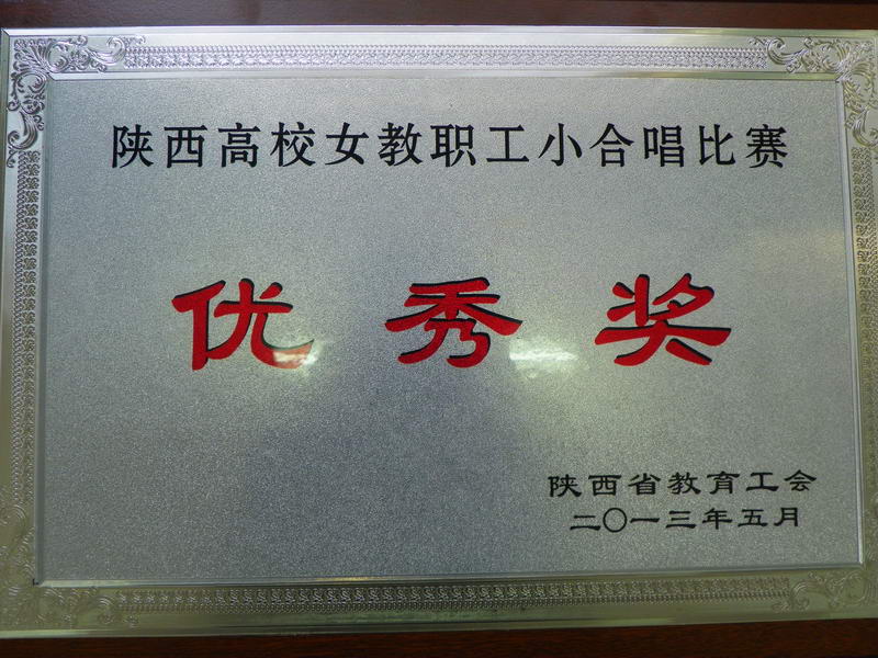 由陕西省教育工会组织的旨在活跃高校文化生活、增进了解、增强友谊的“唱响时代旋律,展现巾帼风采”小合唱比赛活动于5月9日-10日在西安举行。我院13名女教职工组队参赛,演唱了《我和我的祖国》、《外婆的澎湖湾》两首曲,比赛时她们正常发挥,取得了较好成绩,最终获得了优秀奖和组织奖。