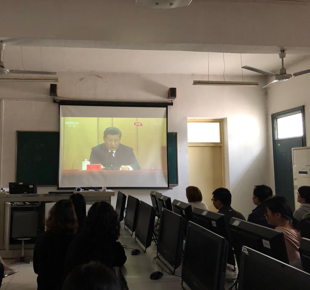 2019年4月30日上午,纪念五四运动100周年大会在人民大会堂隆重召开,习近平出席大会并发表重要讲话,南校区组织全体辅导员和部分无课学生在1机房观看了大会直播。