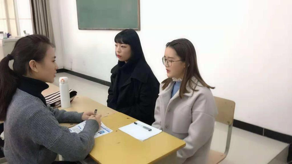 面试环节在综合楼120教室举行。招聘人员要求应聘者自我介绍,表达求职意向。同学们在面试过程中从容应答,自信满满,充分展现了我院学生良好的精神风貌。